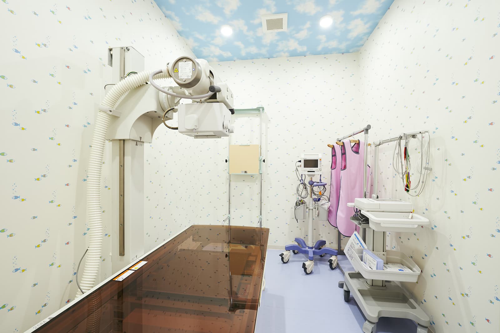 レントゲン室青空天井のお部屋でレントゲン検査を行います。